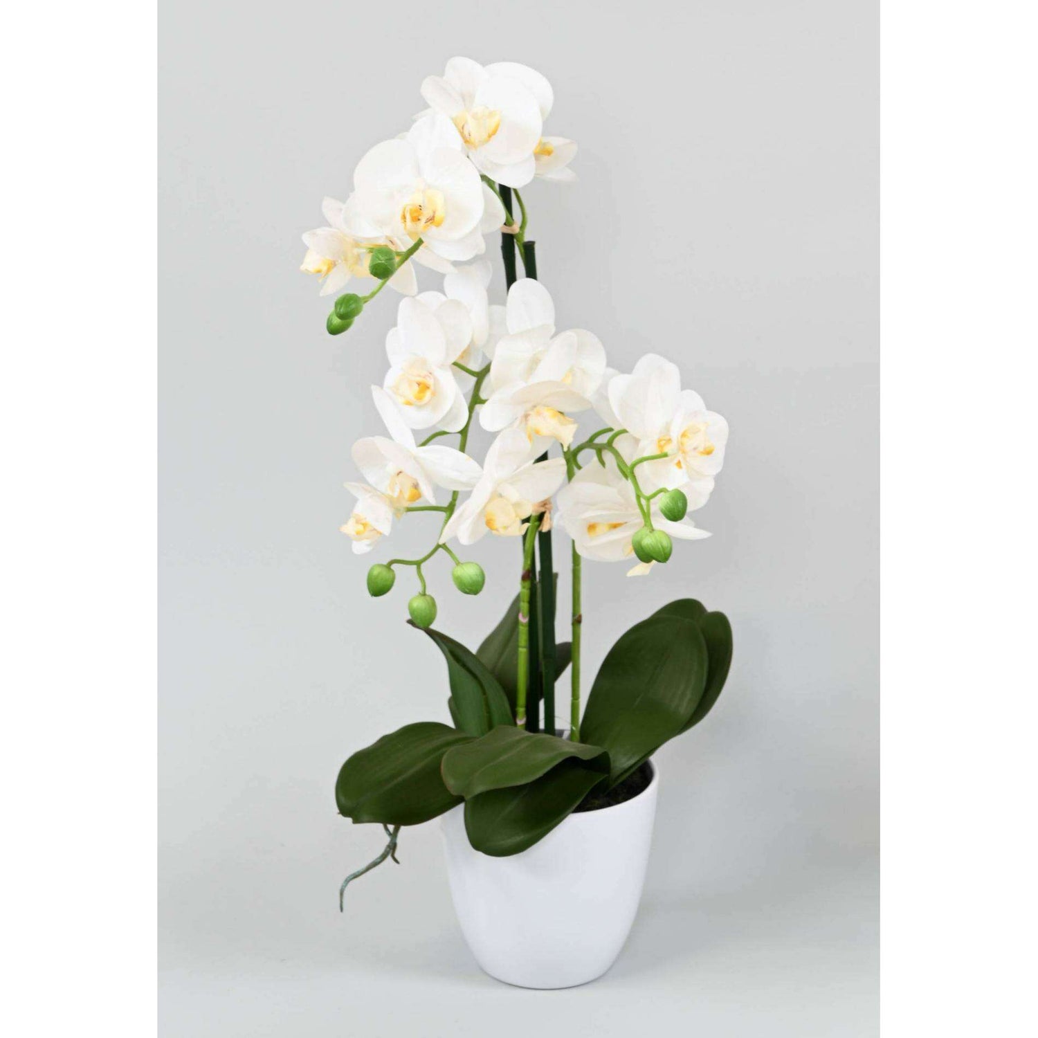 Fleur artificielle Orchidée Phalaenopsis avec pot blanc - plante d'intérieur - H.60cm